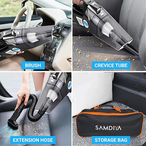 120-watt car vacuum cleaner provided with multiple cleaning accessories care for all parts of your car; cleans any sticky dust or pet hairs, hidden dust in the crannies of seats, and scattered wet or dry dust on the floor and seats.
